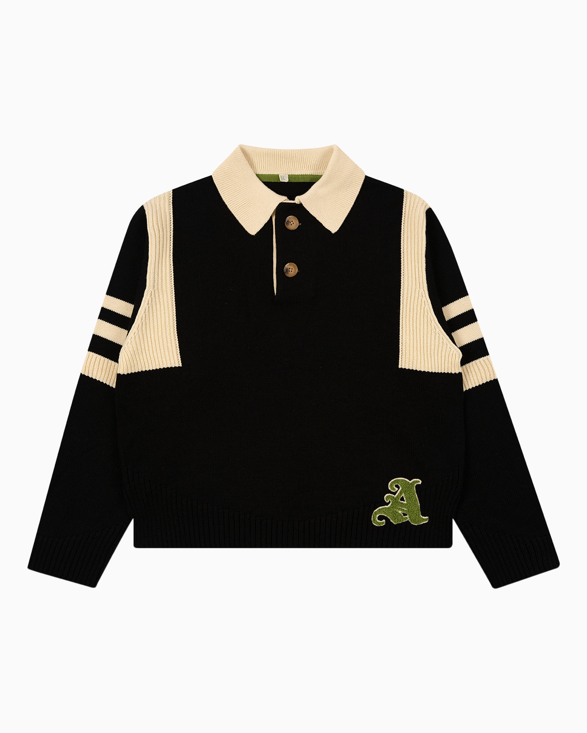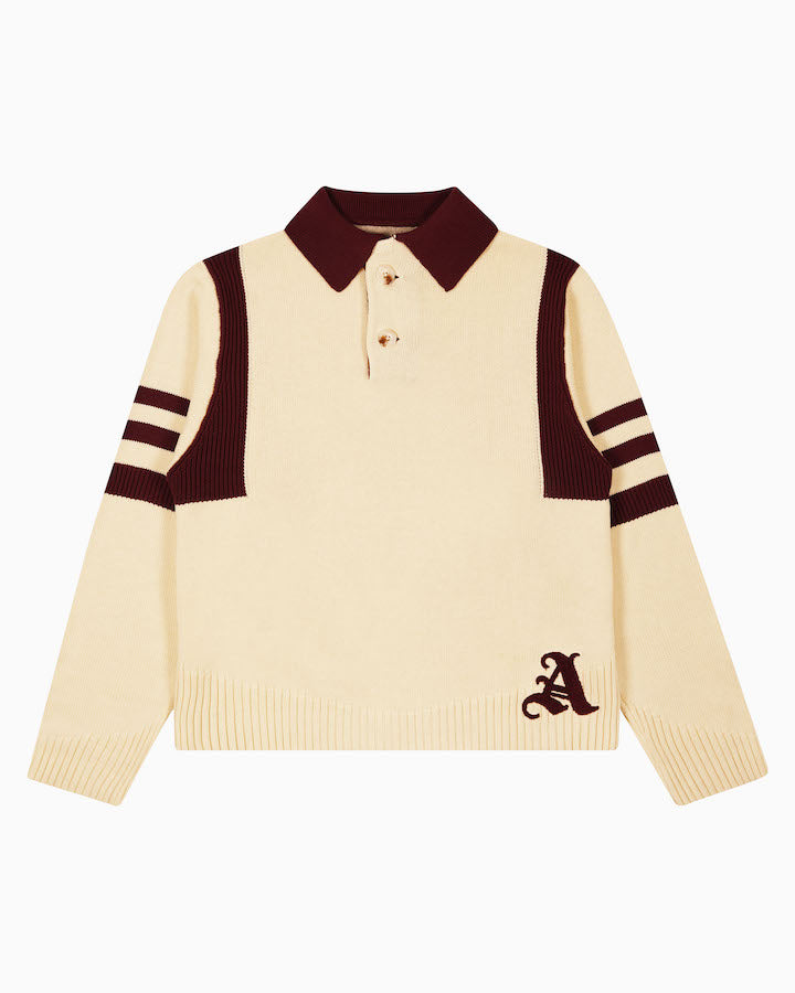 Fashioned from a premium blend of soft materials and tailored for a comfortable, relaxed fit, this lightweight sweater offers a refined interpretation of the timeless rugby style. Its distinctive stripe patterns and gracefully curved ribbed trims elevate its appeal, making it a standout staple piece.